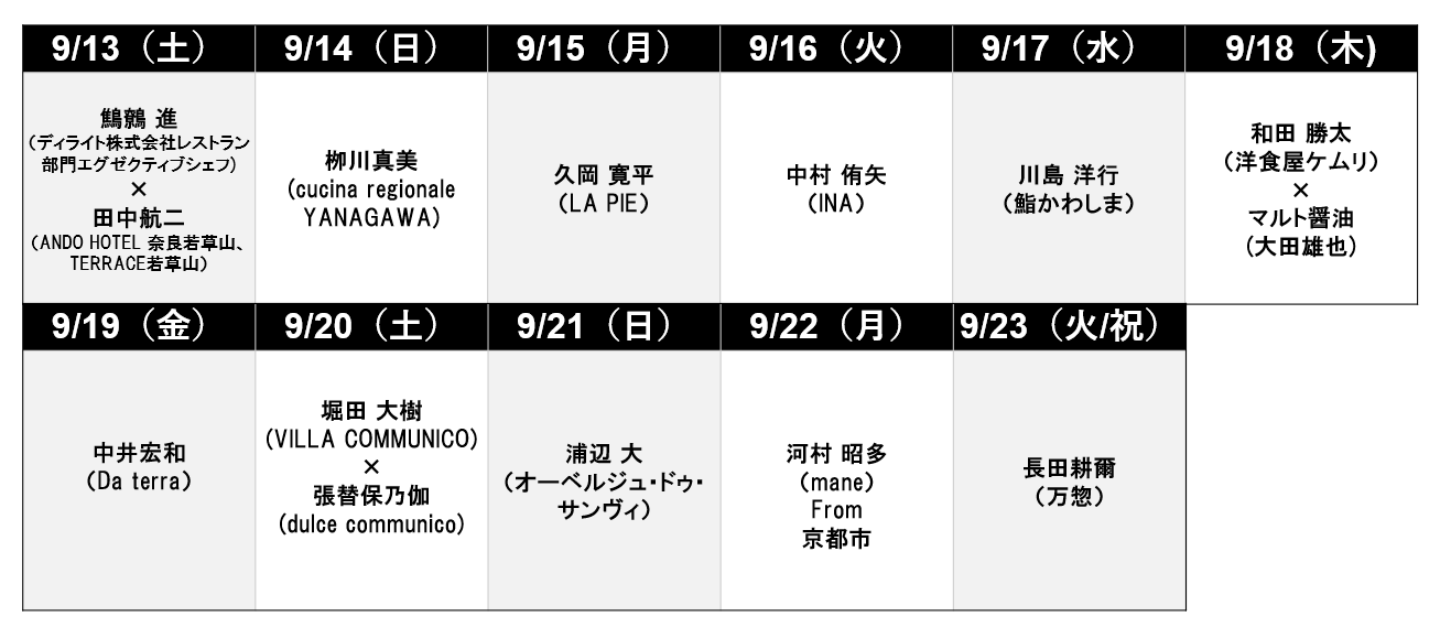 2025年度のシェフズキッチン出演シェフ一覧