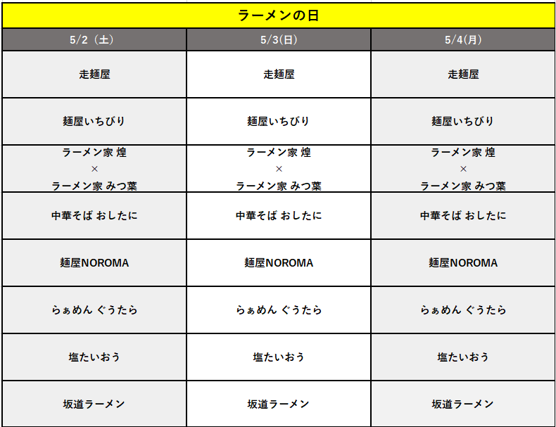 ゴールデンウィークは、ラーメン好き必見の3日間!